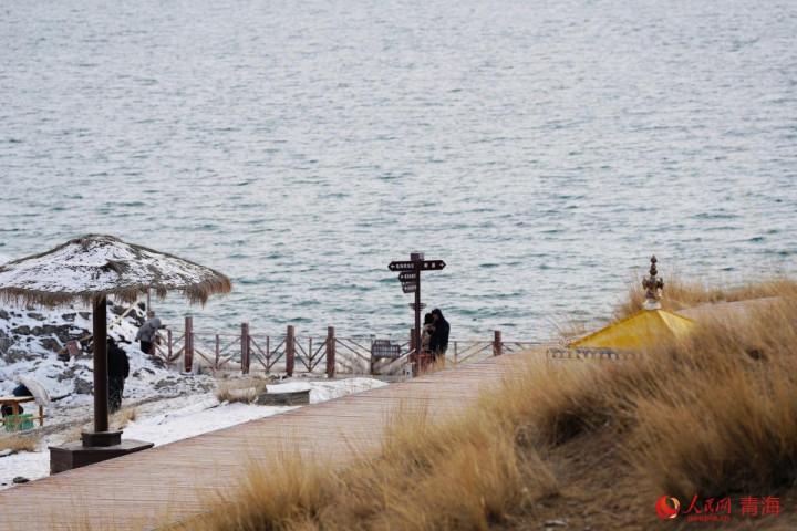 进入12月的青海湖逐渐冰冻。人民网顾斐菲摄