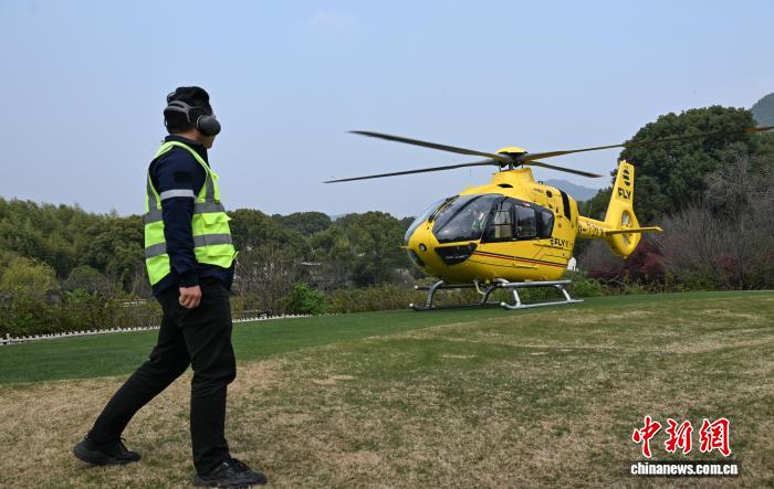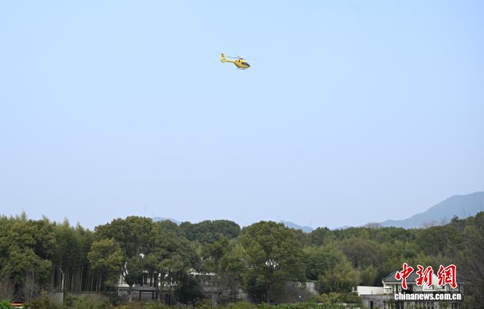 直升机降落在富春山居度假村。中新社记者 王刚 摄