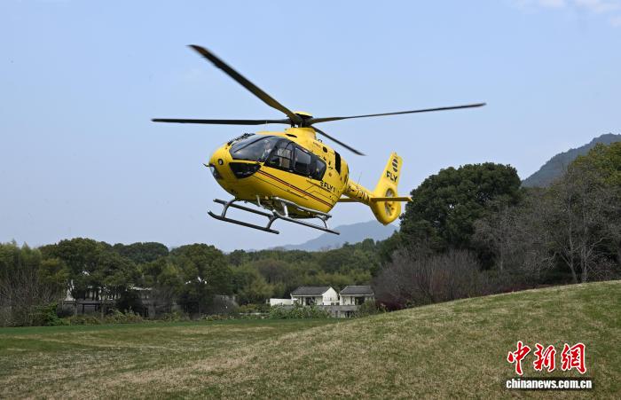 直升机降落在富春山居度假村配资网官方网站入口。中新社记者 王刚 摄