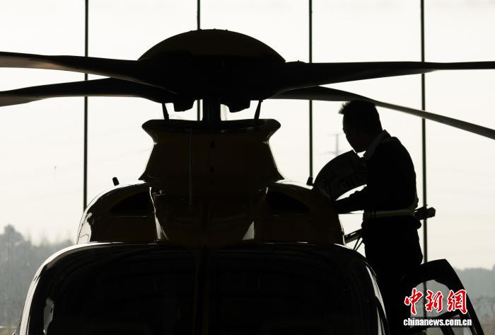 近日,浙江杭州,“ONE53—富春山居”直升机航线成功首航,该航线连接杭州城区和富春山居度假村,将60分钟左右的地面通勤时间压缩至10分钟左右。钱江之畔繁华都市和《富春山居图》实景地、创作地富阳以“空中快线”相连接,其高效出行方式吸引高端需求,感受从现代图景“飞入”诗画山水。工作人员查看直升机设备。陈韵钊 摄