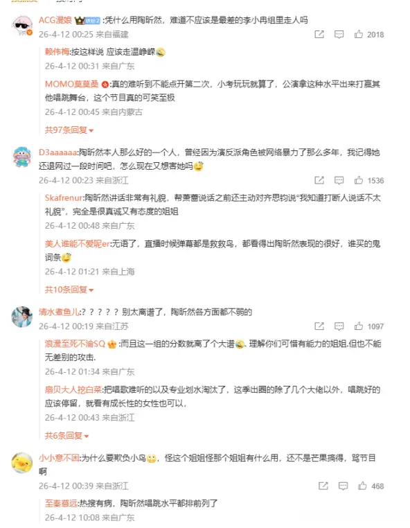 “凭什么陶昕然,难道不应该是最差的李小冉组里走人吗?”